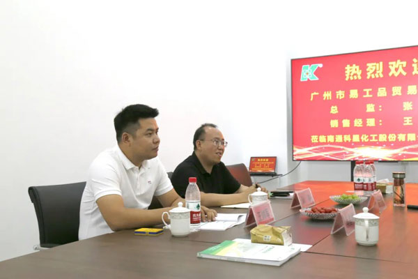 2023年6月21日廣州市易工品貿易有限公司總監張濤、銷售經理王帥軍一行蒞臨我司考察指導,科星董事長吳龍鐵,銷售副總吳昌祥,銷售經理謝培華熱情接待。