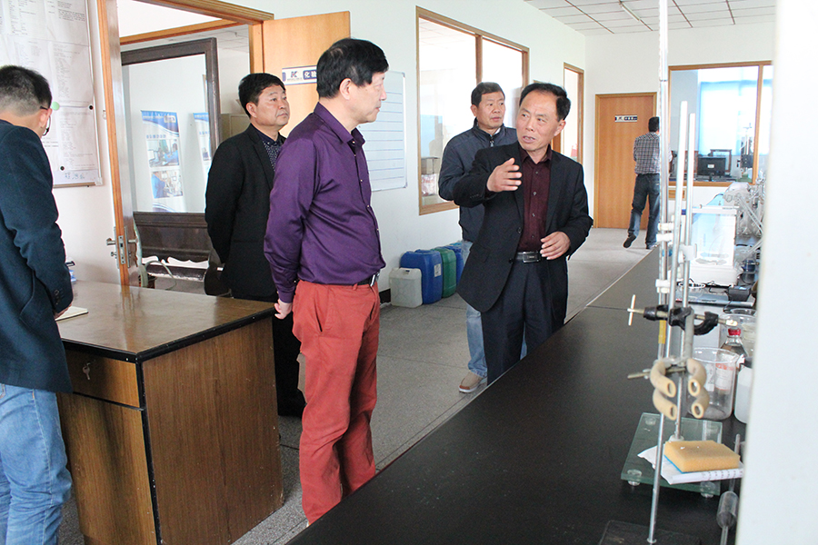 科星化工董事長吳龍鐵在化驗室向來賓講解產品檢測過程、介紹產品研發(fā)工藝。