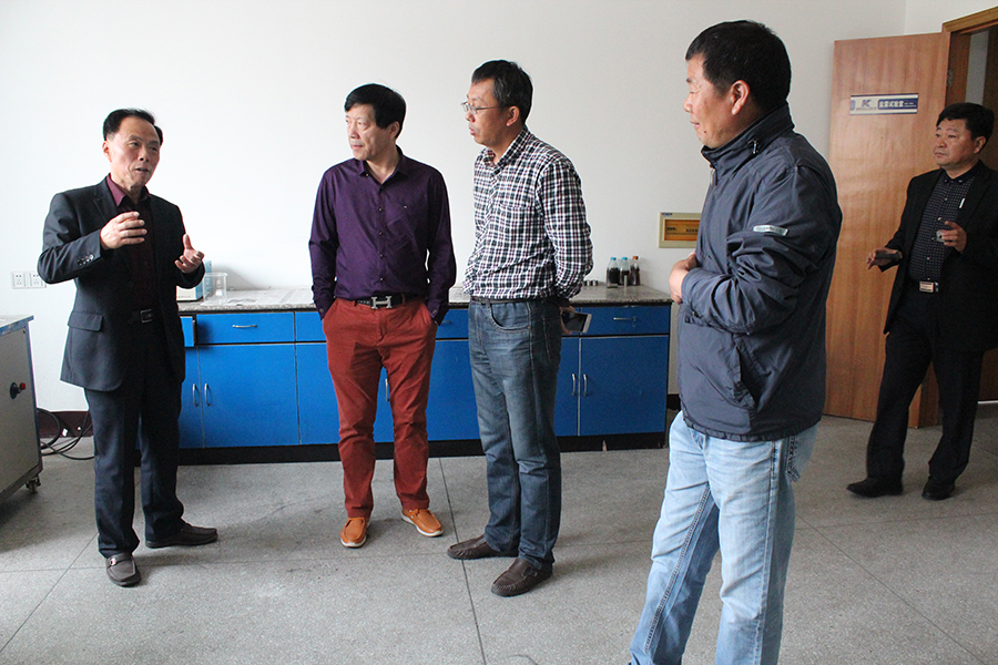 來賓在鹽霧試驗室跟董事長吳龍鐵探討產品的性能,并對我司產品在實際生產中所展現(xiàn)出的高效、節(jié)約、環(huán)保等優(yōu)越性能給予了高度的評價