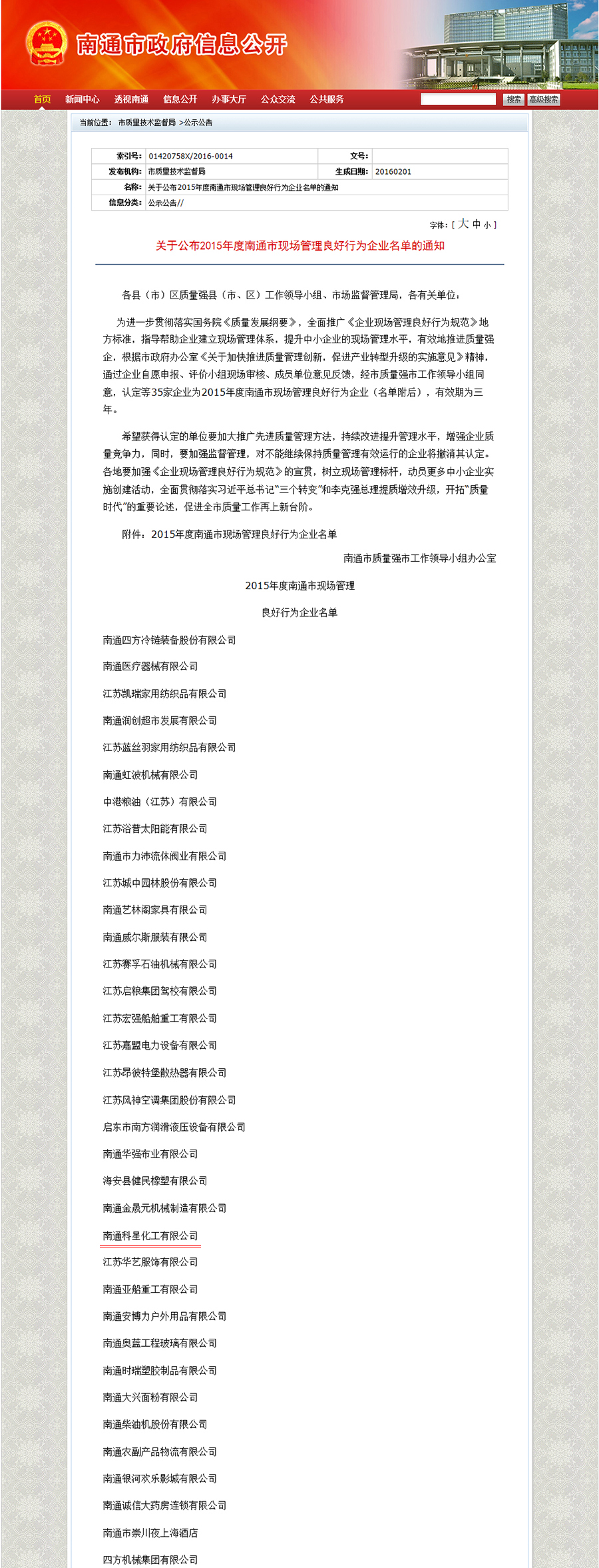 2015年度南通市現場管理良好行為企業