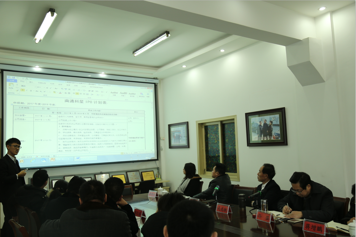 2017年1月18日上午十時,科星公司在公司總部會場舉行了主板上市推進會,縣發改委上市辦主任孫強、白甸鎮黨委副書記蔣增鵬同志及公司主要領導參加會議。