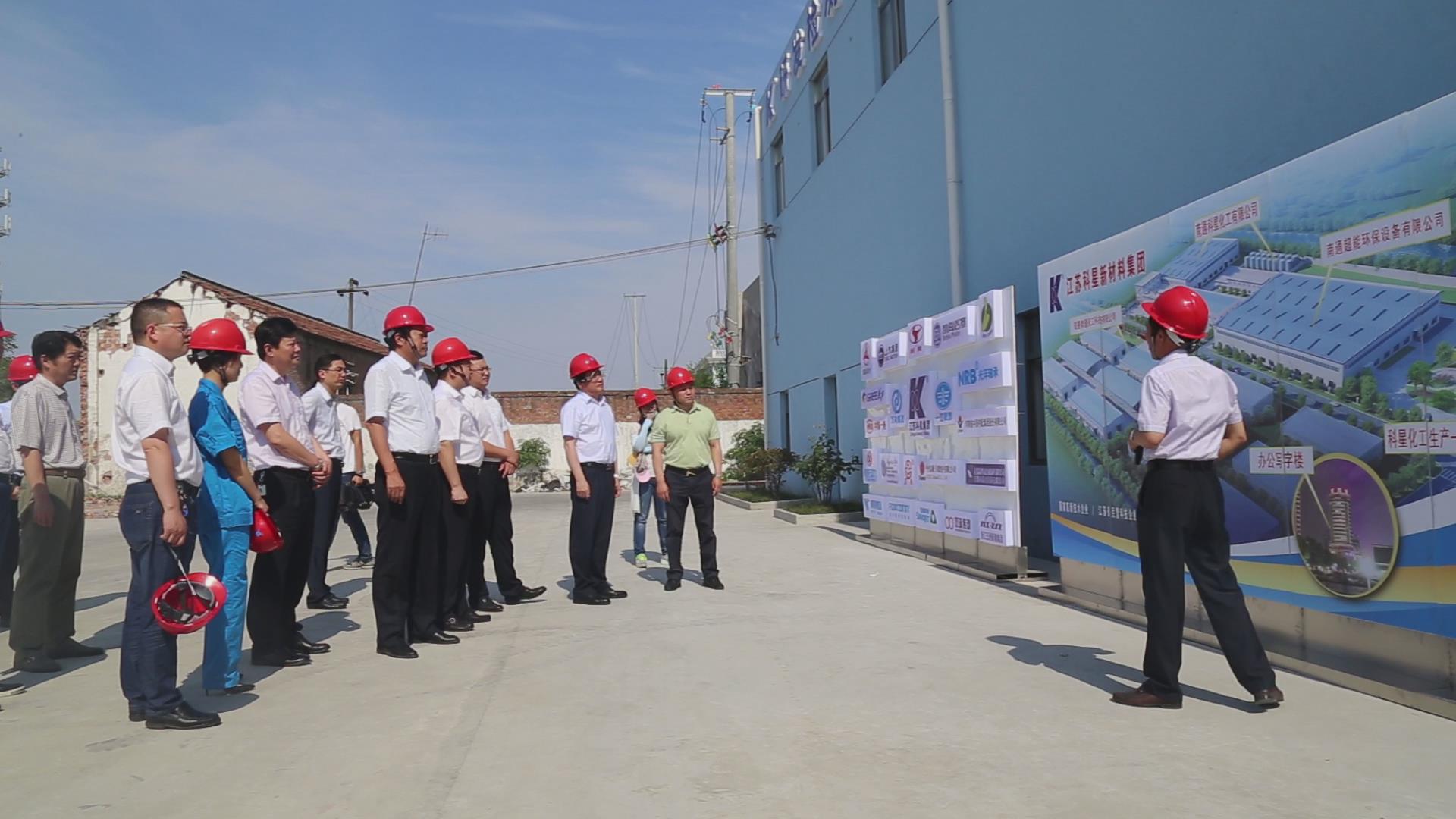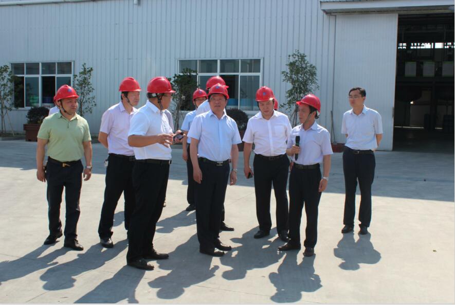 2017年6月16日,中共海安縣縣委副書(shū)記、縣長(zhǎng)顧國(guó)標(biāo)(右四)一行領(lǐng)導(dǎo)專(zhuān)程來(lái)科星化工有限公司深入調(diào)研。江蘇科星集團(tuán)董事長(zhǎng)吳龍鐵(右二)陪同縣領(lǐng)導(dǎo)在現(xiàn)場(chǎng)參觀(guān)并作詳細(xì)介紹。