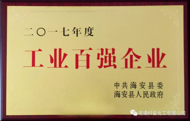 南通科星化工有限公司榮獲“管理創(chuàng)新品牌企業(yè)30強(qiáng)”、“工業(yè)百強(qiáng)企業(yè)”兩大榮譽(yù)稱號,這對科星來說既是榮譽(yù)也是動力。