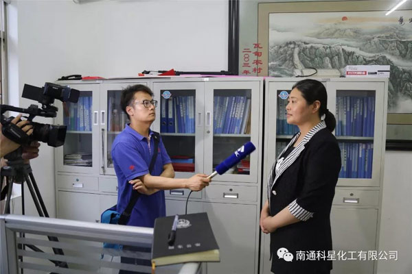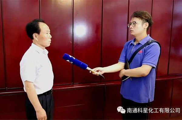 6月上旬,江蘇衛視一行人在縣環保局負責同志的陪同下,來到南通科星化工有限公司進行采訪報道。作為全省263行動中的先進典型,董事長吳龍鐵代表科星化工接受了江蘇衛視的采訪。