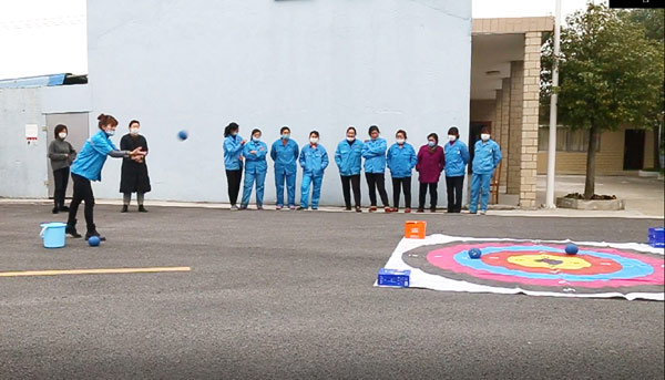在最后一輪拋球投準比賽中,女職工們都鉚足勁,把自己的最佳狀態發揮出來,瞄準靶心,精準發力。