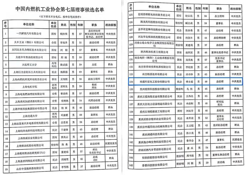 南通科星化工股份有限公司當選中國內燃機工業協會理事單位
