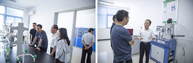 美的集團考察組首先來到位于江蘇省級高新區(海安)江蘇科星新材料暨南通科星化工股份有限公司總部,董事長吳龍鐵陪同考察組參觀科星研發中心,詳細介紹了研發中心各類儀器設備的功能應用情況,考察組對科星的研發技術力量給予高度肯定。