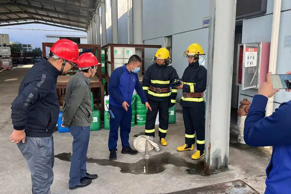檢查組一行詳細查看了生產現場消防區域情況,通過聽取匯報、設備實操等方式對科星消防措施落實和應急能力進行了全面抽查和現場指導。