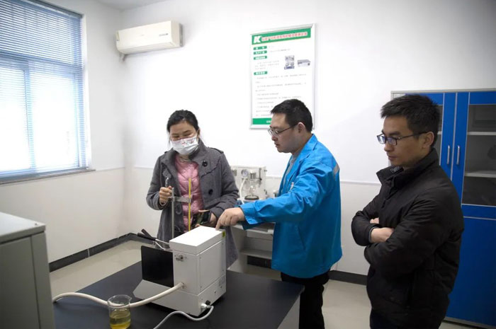 考察組一行首先參觀了科星總部研發(fā)中心,技術(shù)副總王凱華向考察組介紹了公司實(shí)驗(yàn)室六大事業(yè)部和油品相關(guān)儀器設(shè)備的相關(guān)情況。