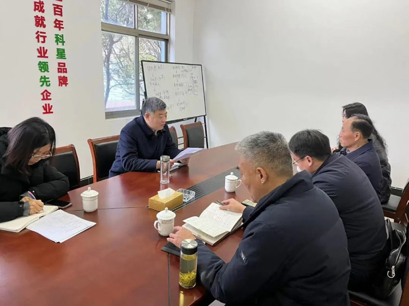 2024年3月5日,海安市委副書記、政法委書記嚴長江,海安生態(tài)環(huán)境局副局長楊曉燕赴南通科星化工股份有限公司調研考察。白甸鎮(zhèn)黨委書記蔣增鵬、副鎮(zhèn)長郭勇、科星董事長吳龍鐵、副總經(jīng)理(工廠廠長)劉小燕、財務副總吳桂紅等陪同參加。