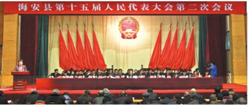 1月28日,海安縣第十五屆人民代表大會第二次會議在海中體藝館隆重召開!30日會議閉幕。公司董事長吳龍鐵先生出席了會議。